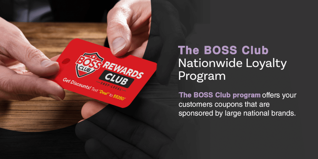 The easiest way to take full advantage of coupons is to do what the retailers in our case study did. They became part of the BOSS Club loyalty program. With the BOSS Club, you don’t have to do the work of coming up with special discounts, and you don’t have to make your own coupons. Instead, your customers will get digital coupons sent straight to their devices that they can redeem only at stores that are part of the BOSS Club network.